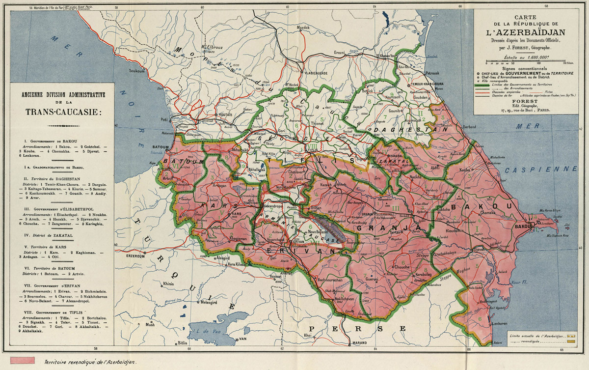 Source: Joseph Forest, Carte de la République de l'Azerbaïdjan, Paris, 1919.