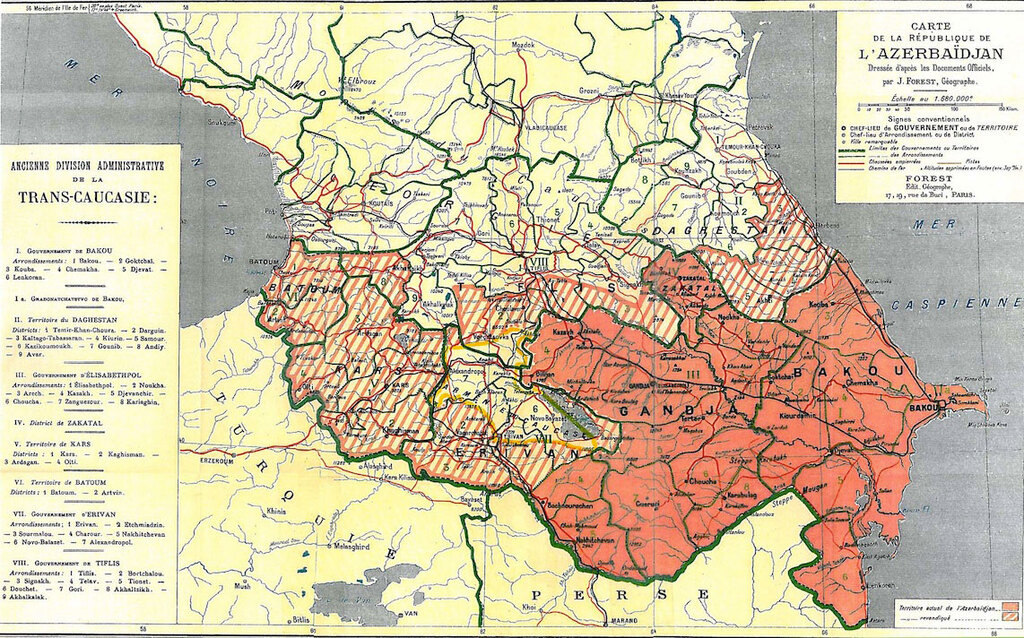 Source: Joseph Forest, Carte de la République de l'Azerbaïdjan, Paris, 1919.