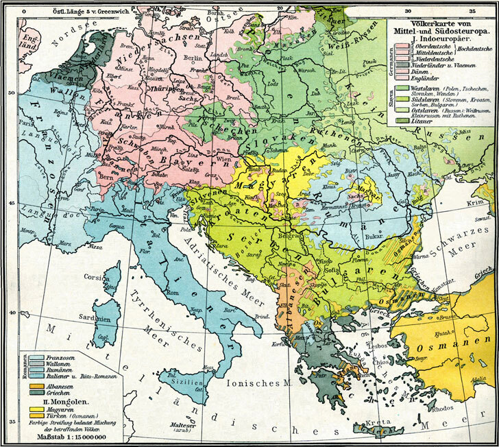 Ethnographic Map of Central Europe & the Balkan Peninsula (1918)