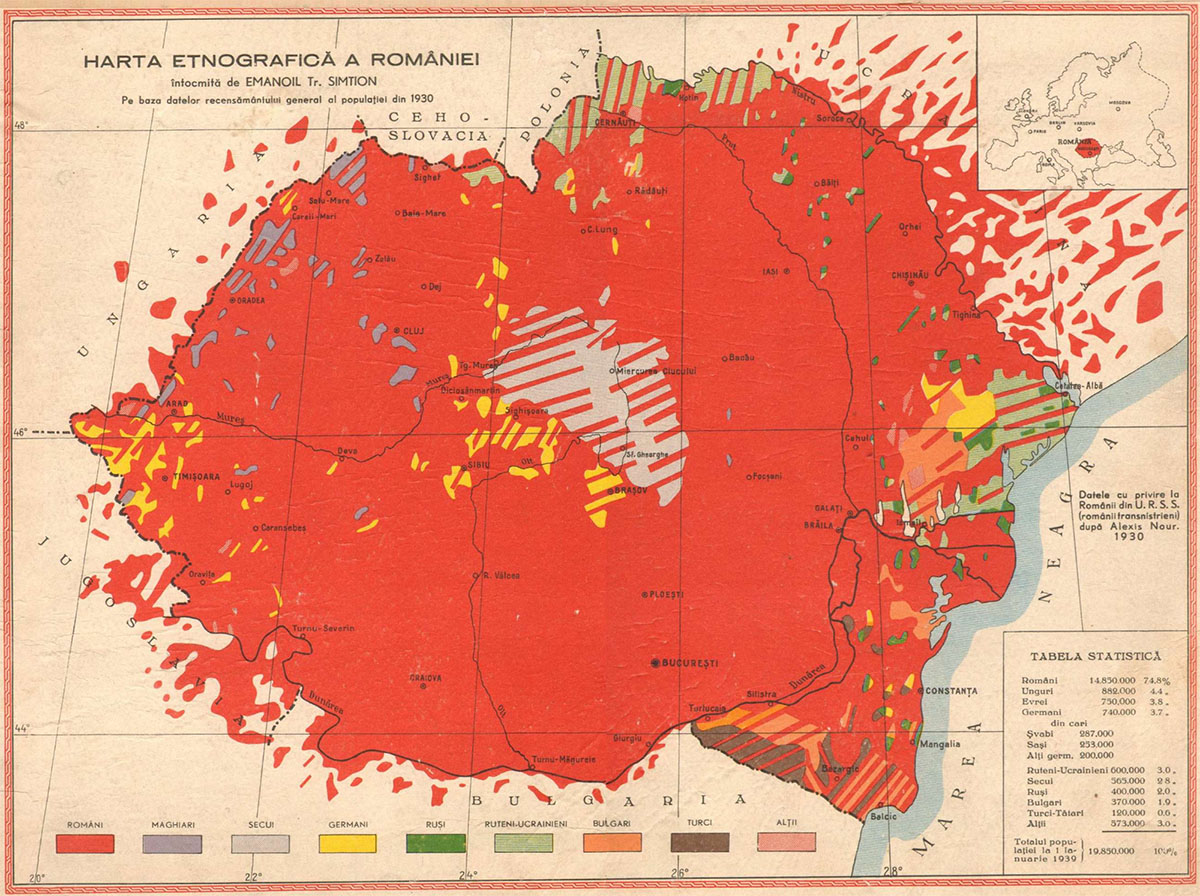 Source: Emanoil Tr. Simtion, Harta etnografica a Romaniei, Bucuresti, 1939.