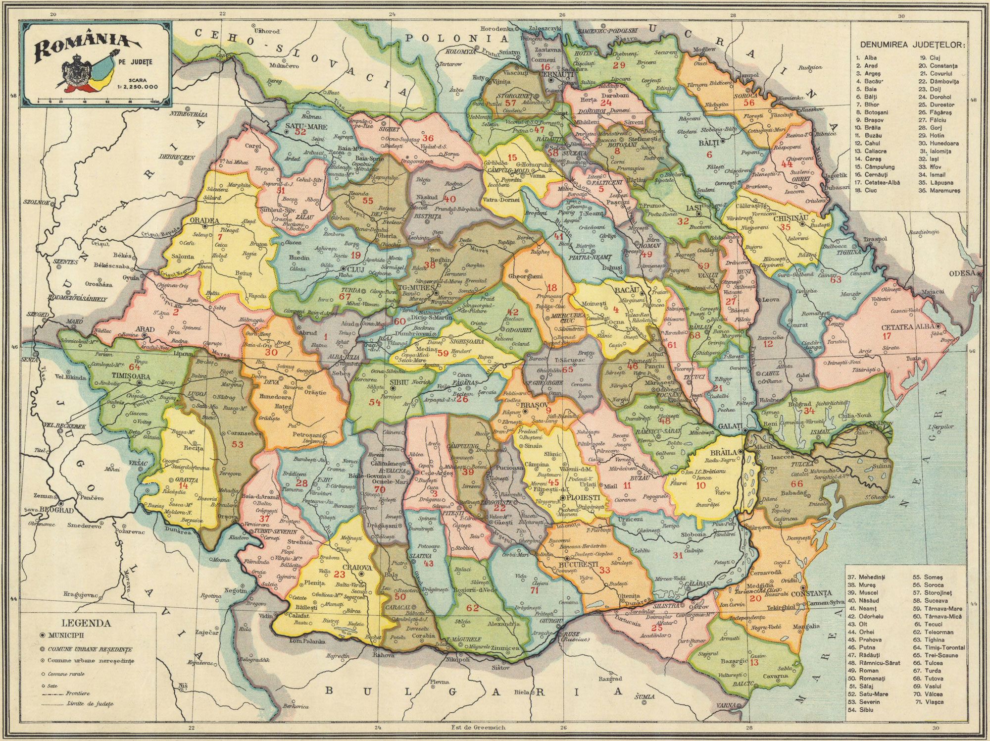 Administrative Map of Kingdom of Romania in 1938