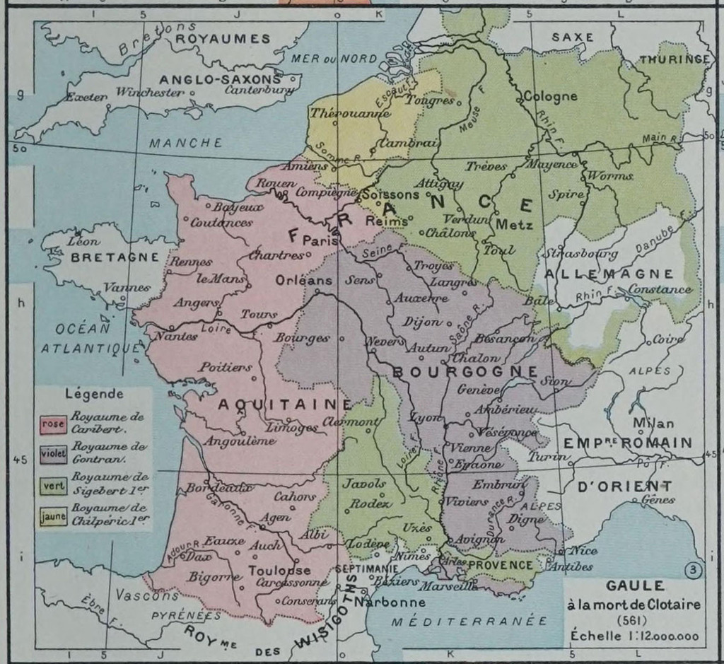 Map of Gaul at the Death of Clotaire (561)