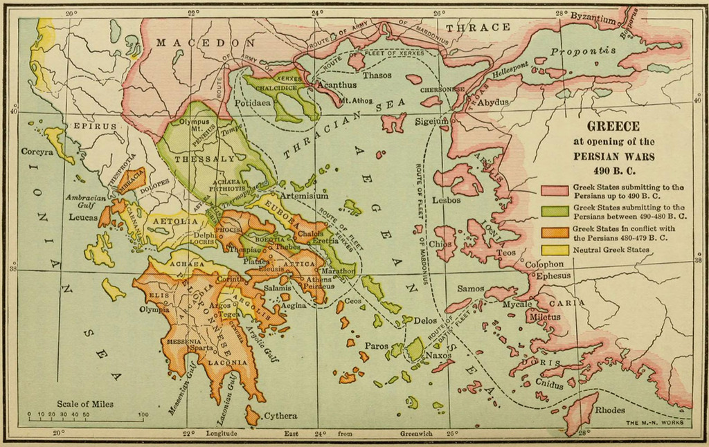 A Map of Greece at the Beginning of the Persian Wars, ca. 490 BC