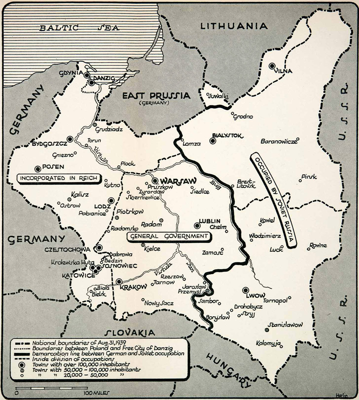 Map of Poland (1939d): The Soviet-German Aggression (An American View)