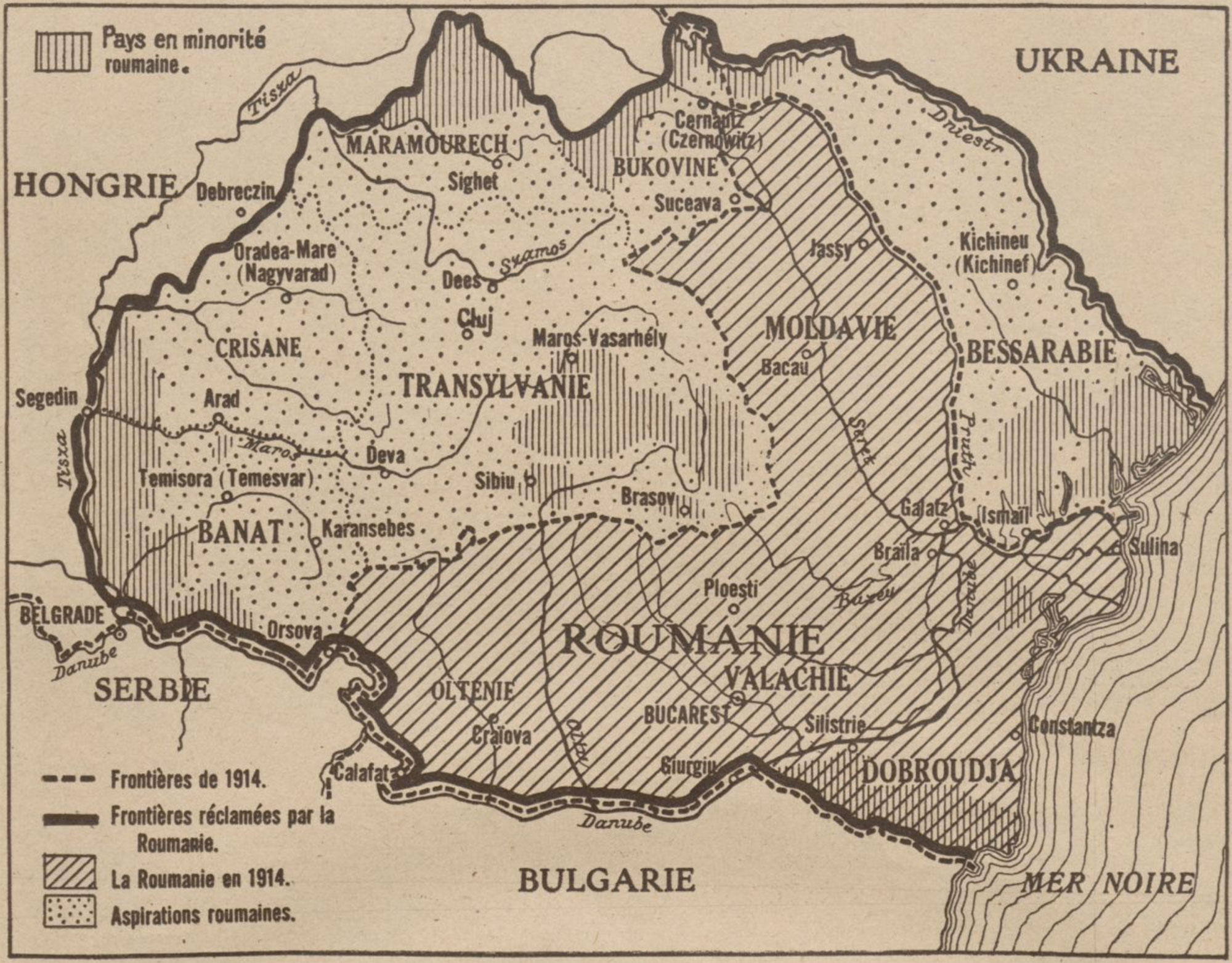 Source: Carte de la monarchie danubienne avec ses anciennes frontières et les territories revendiqués (Le Miroir, Paris, August 10, 1919)
